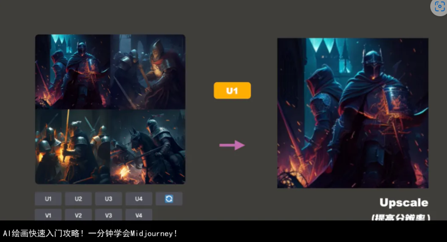 - 然后选择自己比较喜欢的一张,比如u1 ,ai就会继续丰富这一张提升画质和细节