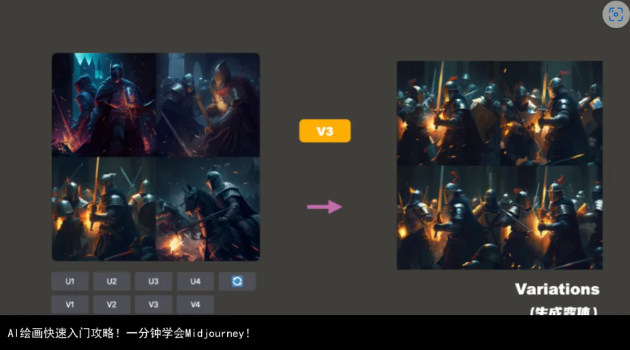 - 比如我比较喜欢第三张的构图。点击v3 四张都会变成类似v3的构图