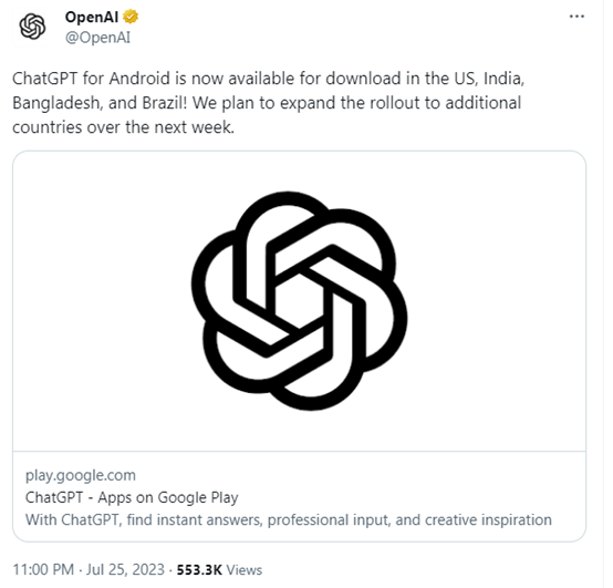 早在今年5月19日,OpenAI推出了面向iOS系统的ChatGPT应用,现在终于迎来了安卓版ChaGPT。