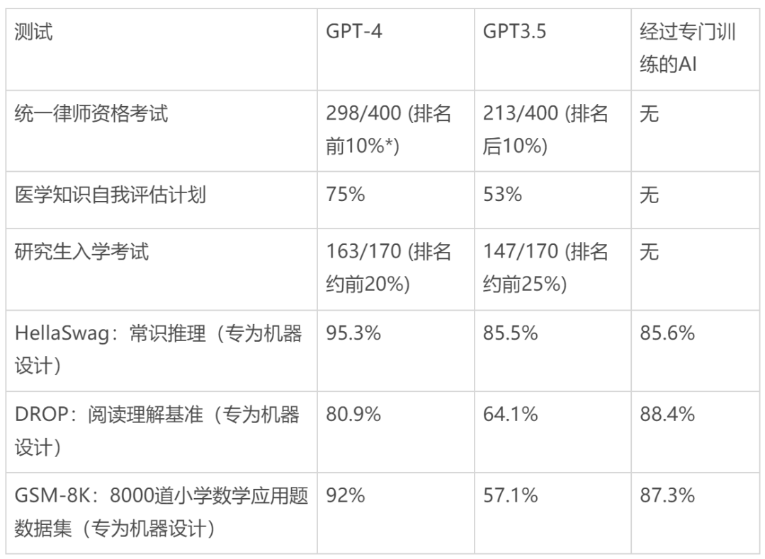 今年 3 月 GPT-4 刚刚发布时,来自加州旧金山的 OpenAI 公司就在一系列专为机器设计的基准测试上评估了新模型的性能,内容包括阅读理解、数学和编码。据 OpenAI 报告,GPT-4 在大多数测试中表现出色 4。他们还为 GPT-4 设置了约 30 项考试,包括:面向美国高中生的各科考试,即先修课程(Advanced Placement);评估美国医生临床知识的考试;以及美国研究生选拔过程中使用的标准测试(GRE)。在统一律师考试(美国有多个州在律师资格考试中包含此项考试)中,GPT-4 的得分成功跻身前 10%。