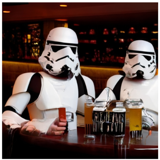两名星球大战里的冲锋队员,坐在酒吧里喝啤酒