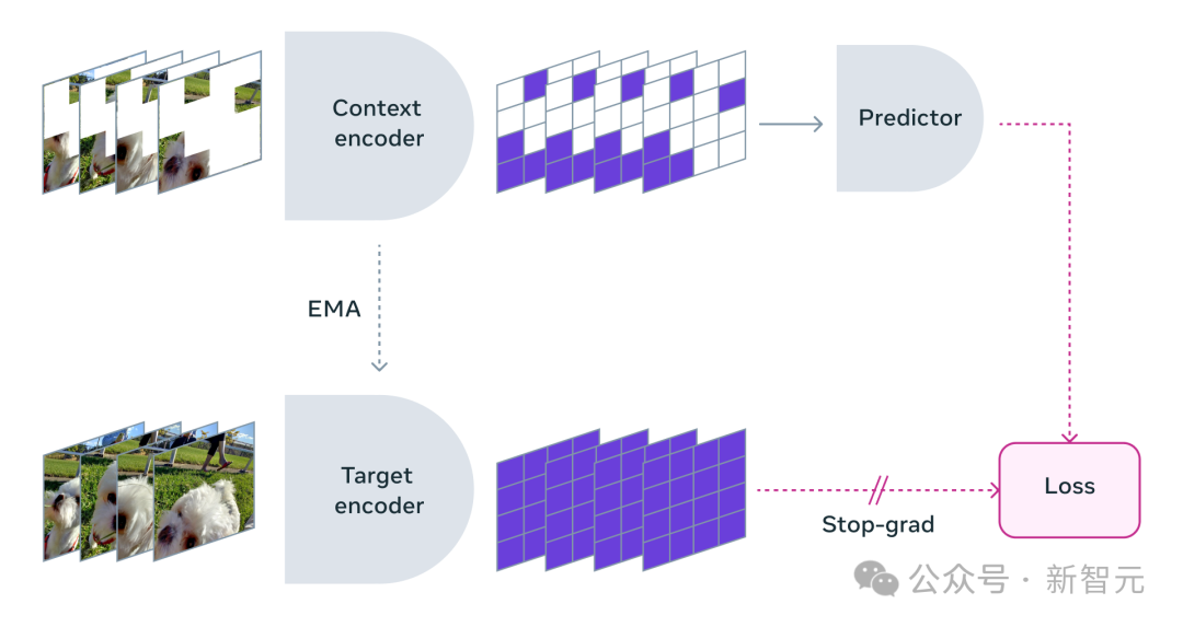 在这个联合嵌入预测架构中,预测器充当了一个初步的「物理世界模型」,能够概括性地告诉我们视频中正在发生的事情。