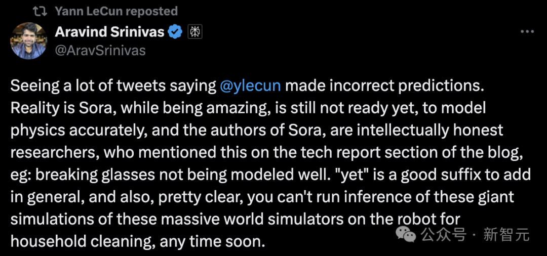 在他看来,「仅根据文字提示生成逼真的视频,并不代表模型理解了物理世界。生成视频的过程与基于世界模型的因果预测完全不同」。