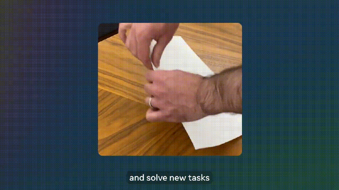 V-JEPA看到下面视频中的动作时,会说「将纸撕成两半」。