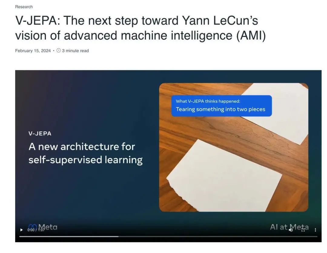 截图来源:https://ai.meta.com/blog/v-jepa-yann-lecun-ai-model-video-joint-embedding-predictive-architecture/